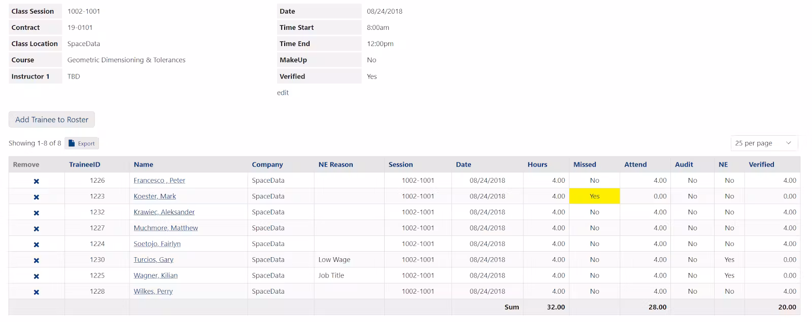 The biggest challenge is to collect the company information for the state. For example, a company may need to put 60 engineers through a training course. That means three classes of 20 participants each, and personal data and demographics on each of them. Plus, any given class could have participants from several different companies resulting in additional paperwork.