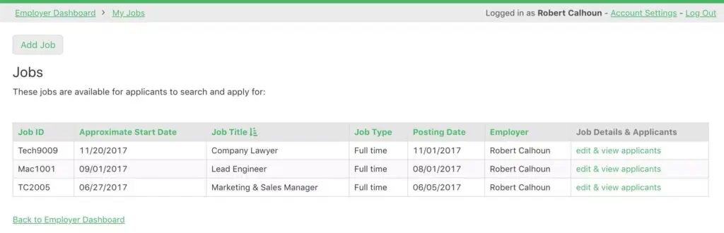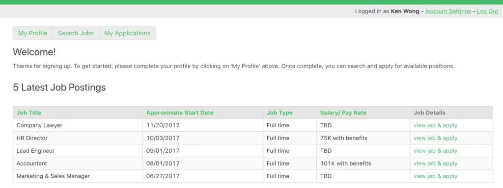 - Self-serve – Both companies and applicants manage their profiles, jobs, and applications with no administration needed.