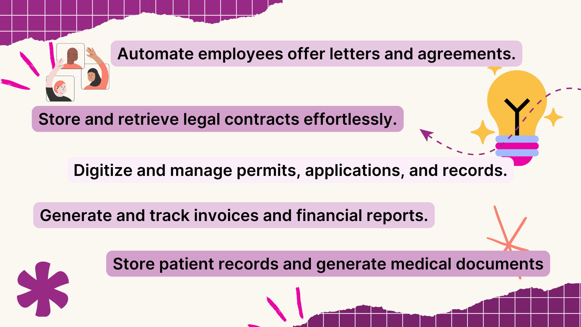 • Government Agencies: Digitize and manage permits, applications, and records.