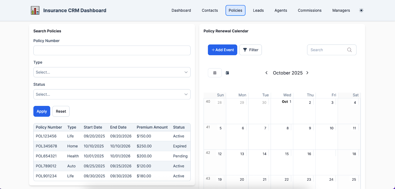 - Policy Lifecycle Tracking: Enables agents to manage every stage of a policy’s journey in one place, ensuring nothing falls through the cracks from initial quote to claim resolution.