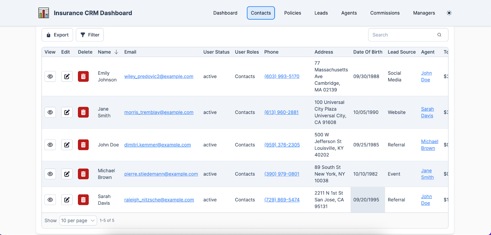 For example, an agent can use the CRM to automatically track a client’s policy milestones, send reminders for premium payments, and schedule periodic check-ins to discuss additional coverage options, ensuring the client feels supported and increasing the likelihood of policy renewals and cross-sell opportunities.