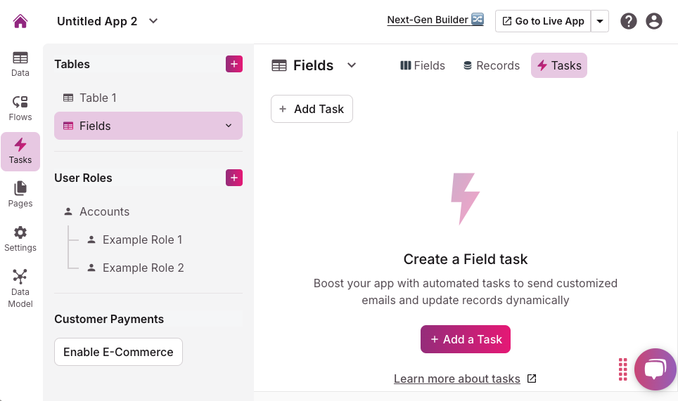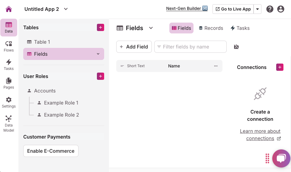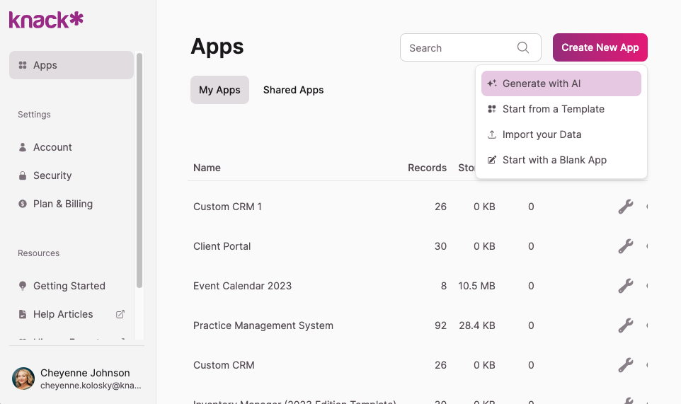 Knack’s AI Builder will generate a basic app structure tailored to your needs.