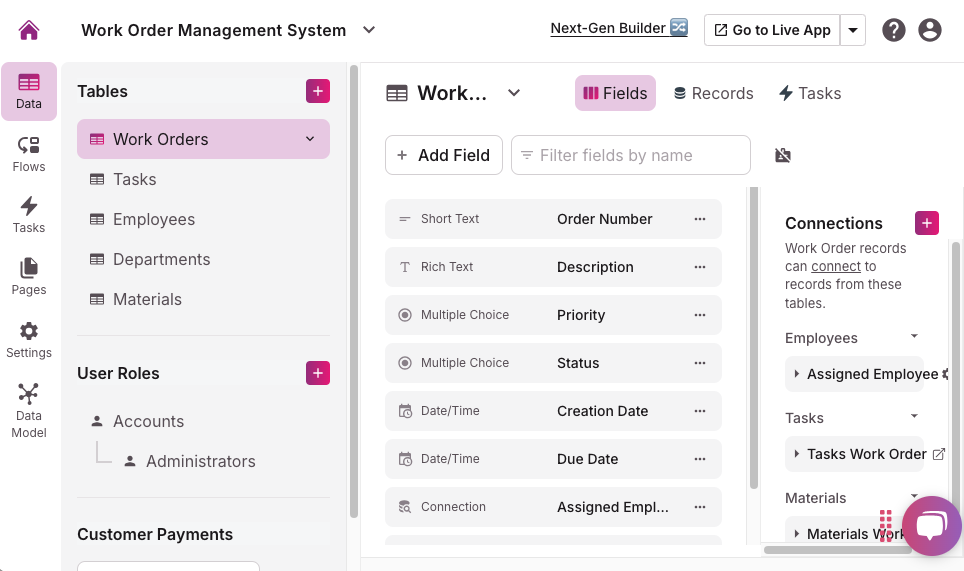 Knack makes this transformation simple with its no-code platform. Whether you’re looking for a quick and automated setup or prefer a hands-on approach to build a fully customized solution, Knack offers powerful tools to digitize and optimize your work order process.