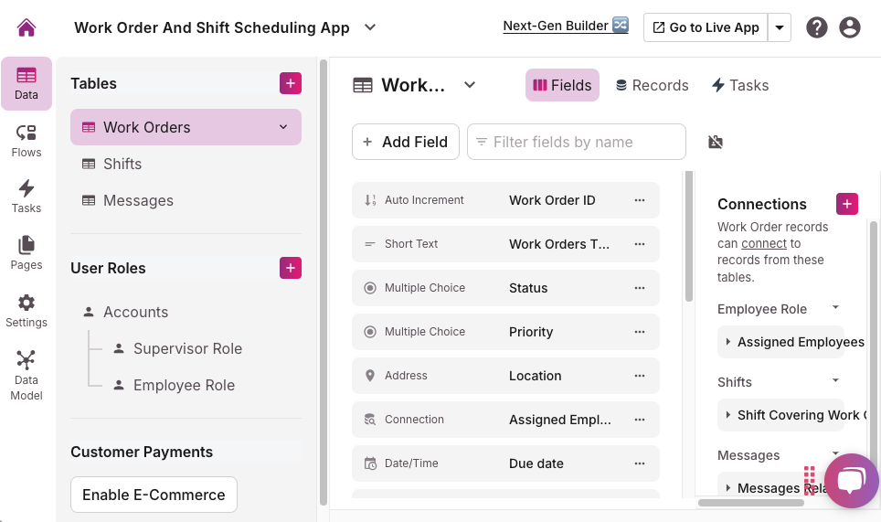 Knack’s Work Order and Shift Scheduling Template App is a fully functional solution that provides a ready-to-use platform for managing work orders, employee assignments, and scheduling. Leveraging its pre-built features, you can quickly digitize your workflows and immediately start tracking tasks and progress.