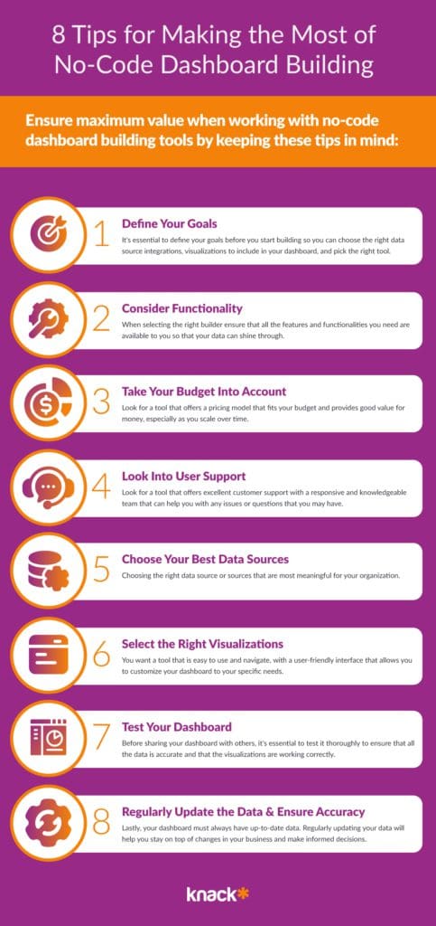 When working with no-code dashboard building tools, there are a few tips to keep in mind to ensure maximum effectiveness.