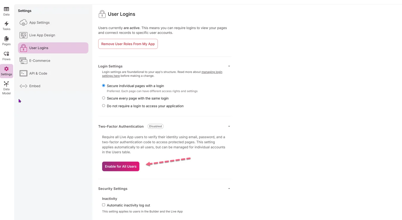 We’re excited to announce that Two-Factor Authentication (2FA) is now live and available on all Pro plans and higher, for both Classic Knack apps and our new Next-Gen apps!