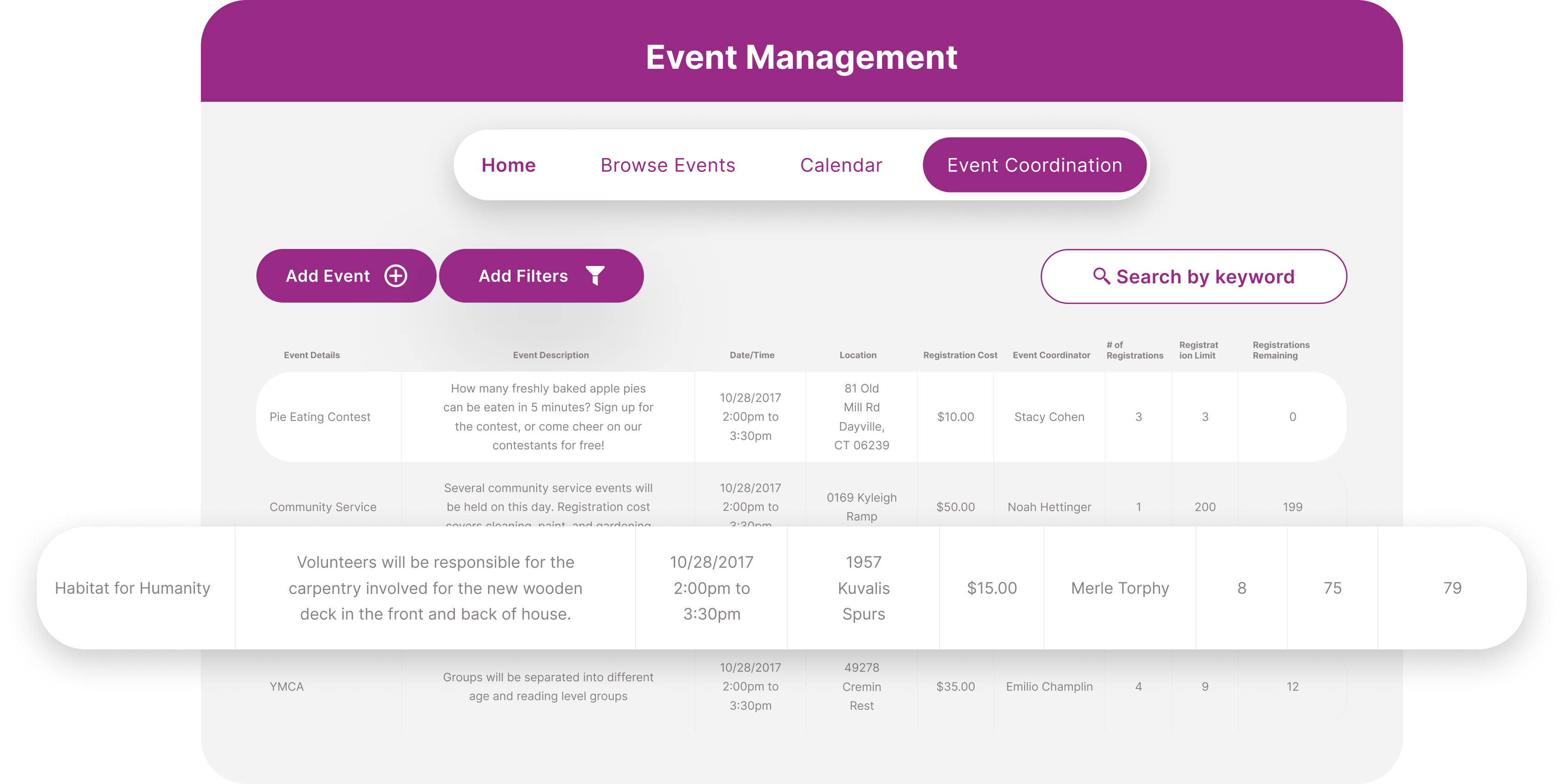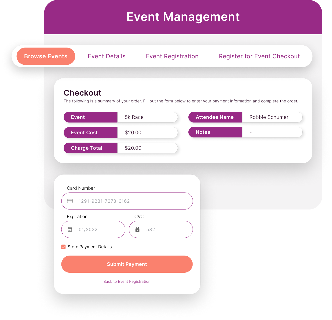 Supercharge your social media, event website, online payment processing, attendee engagement, and planning process through integrations with tools like Quickbooks, Eventbrite, and dozens more. Ensure automation throughout your event organizers’ entire workflows.