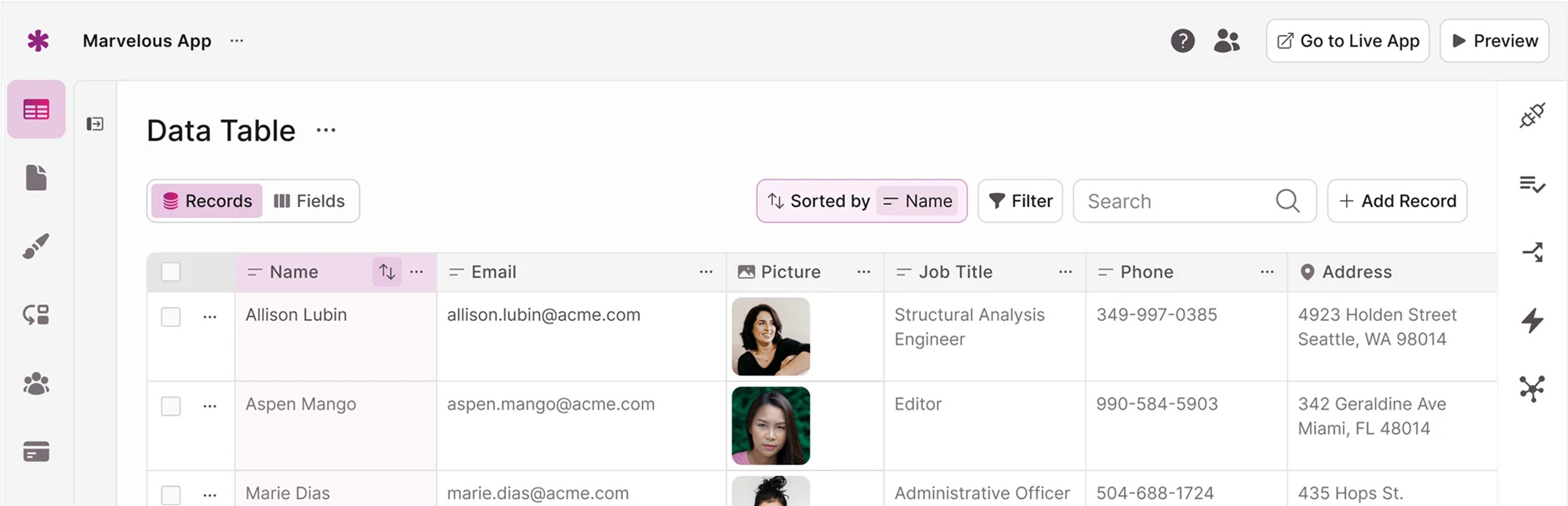 Create a modern online database by getting out of traditional spreadsheets like Microsoft Excel and Google Sheets and into a cloud-based app without the need for coding.