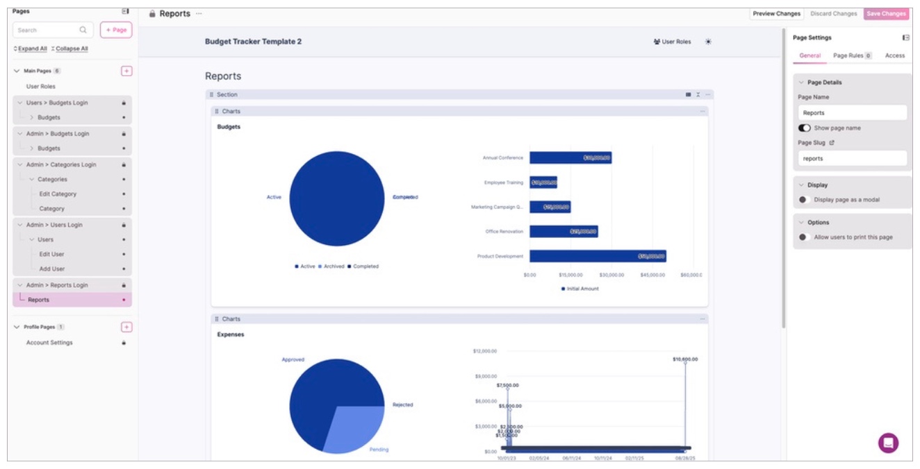 Introducing the Budget Tracker Template App, a no-code solution designed to give businesses, nonprofits, and individuals a clear view of their financial health. With this tool, you can create and monitor budgets, record expenses, and evaluate performance against targets without relying on spreadsheets or complex accounting systems.