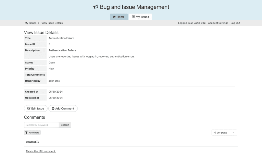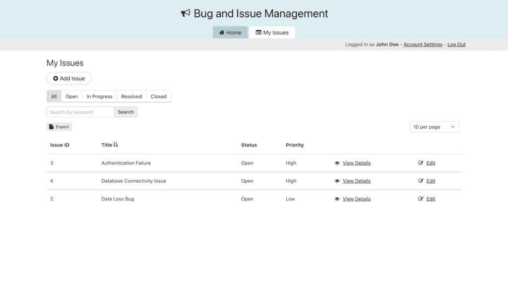 - Empower developers: Developers can view assigned issues, update statuses, add comments, browse all open issues, volunteer to take unresolved issues, and log work progress.