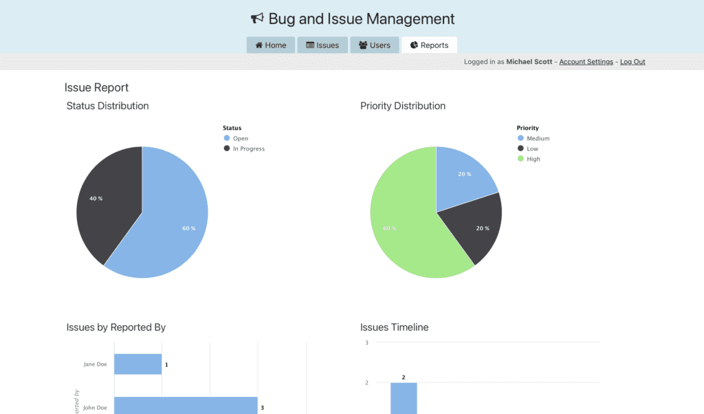 - Reporting and Analytics: Provide insights into issue status, resolution time, and team performance through customizable bug reports and visualizations.