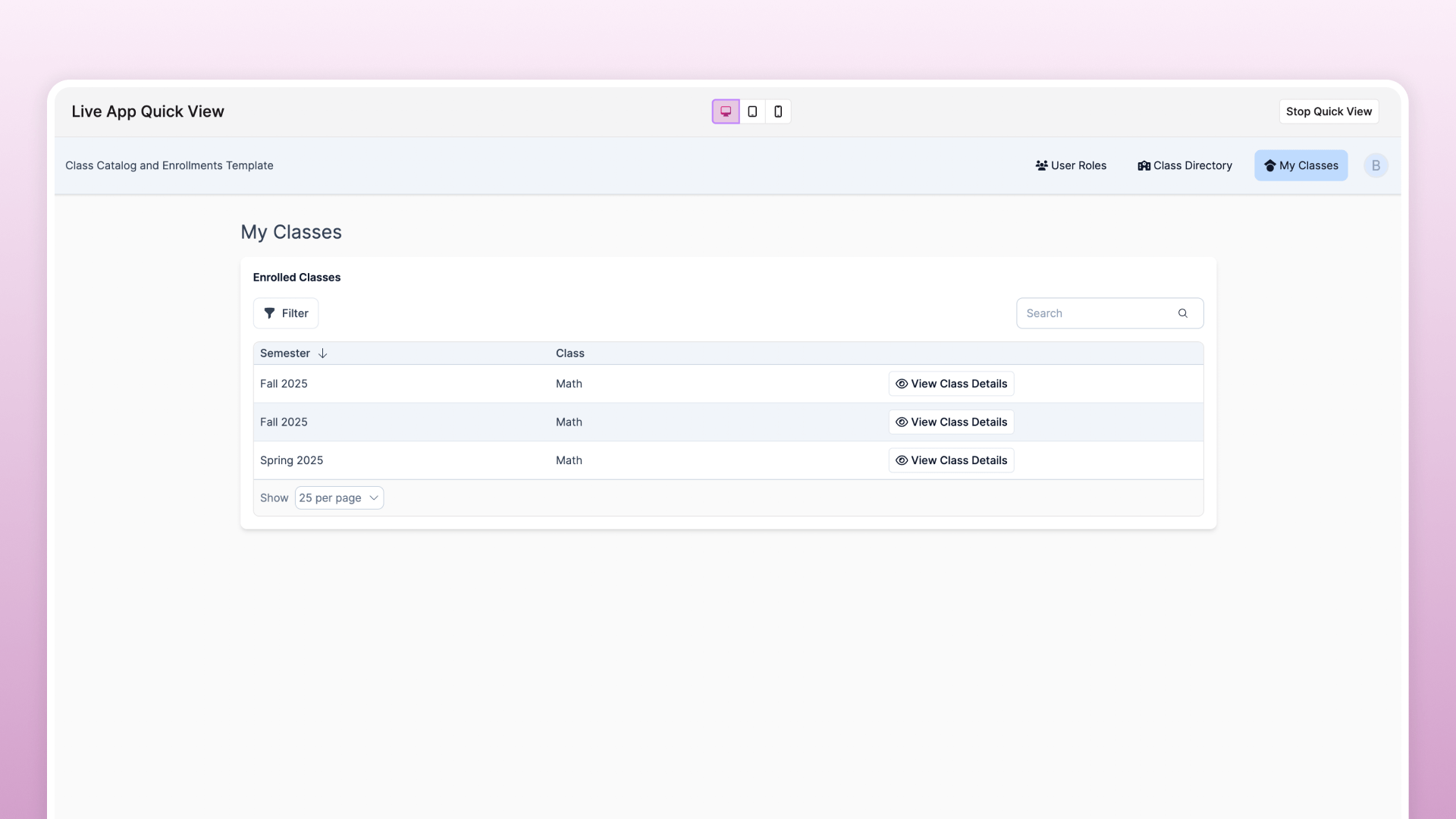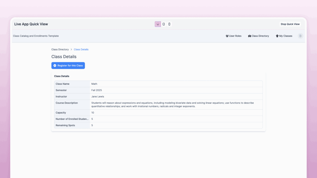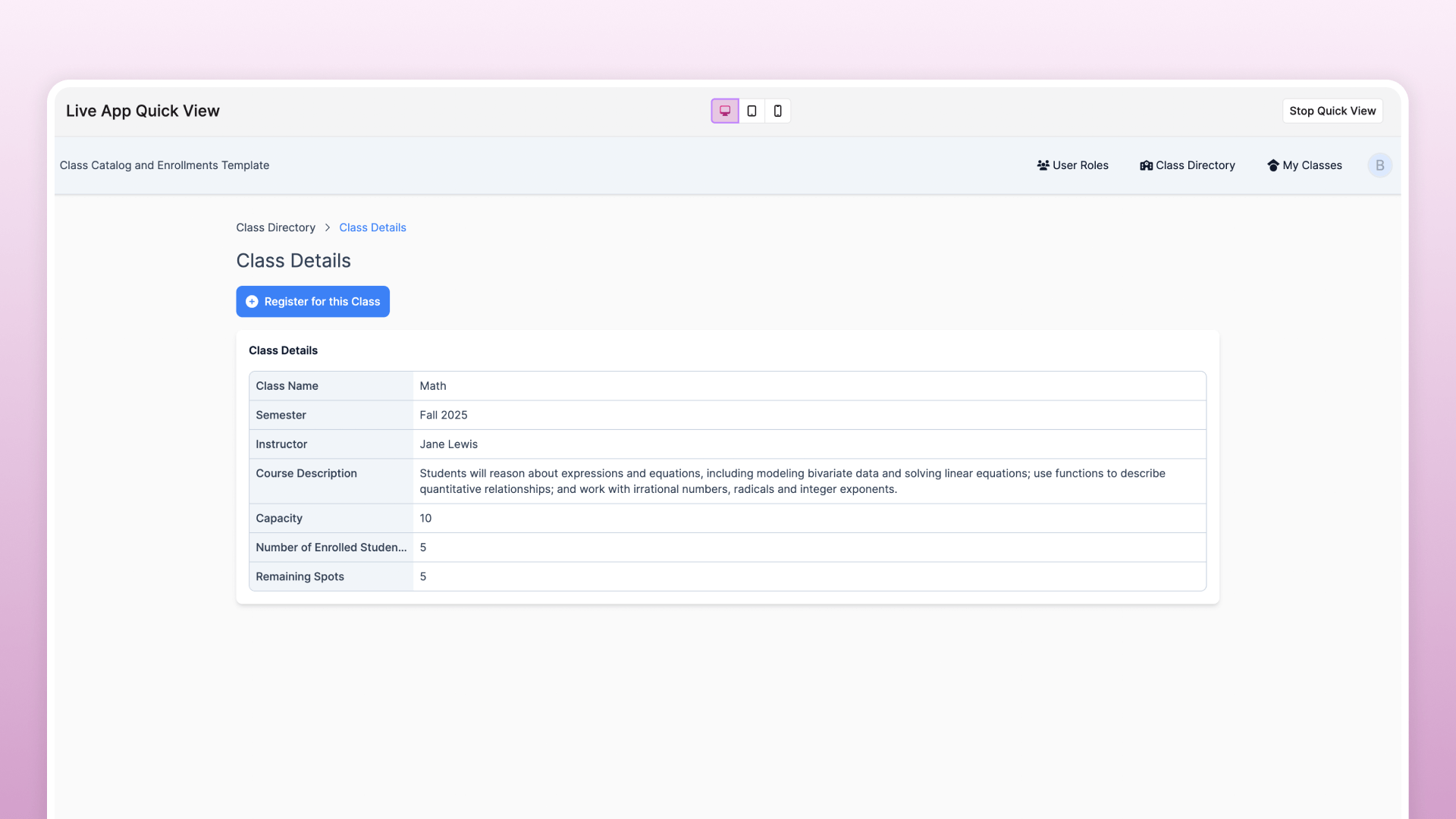 There are more possibilities for expanding the usefulness of an app like this, such as managing assignments, grades, and payments for each class in-app. You can also embed the catalog directly in your school website.