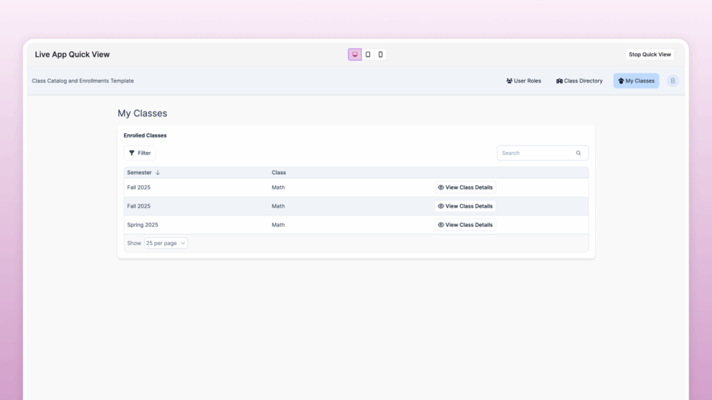 - See how this app is built: Install the Class Catalog and Enrollments