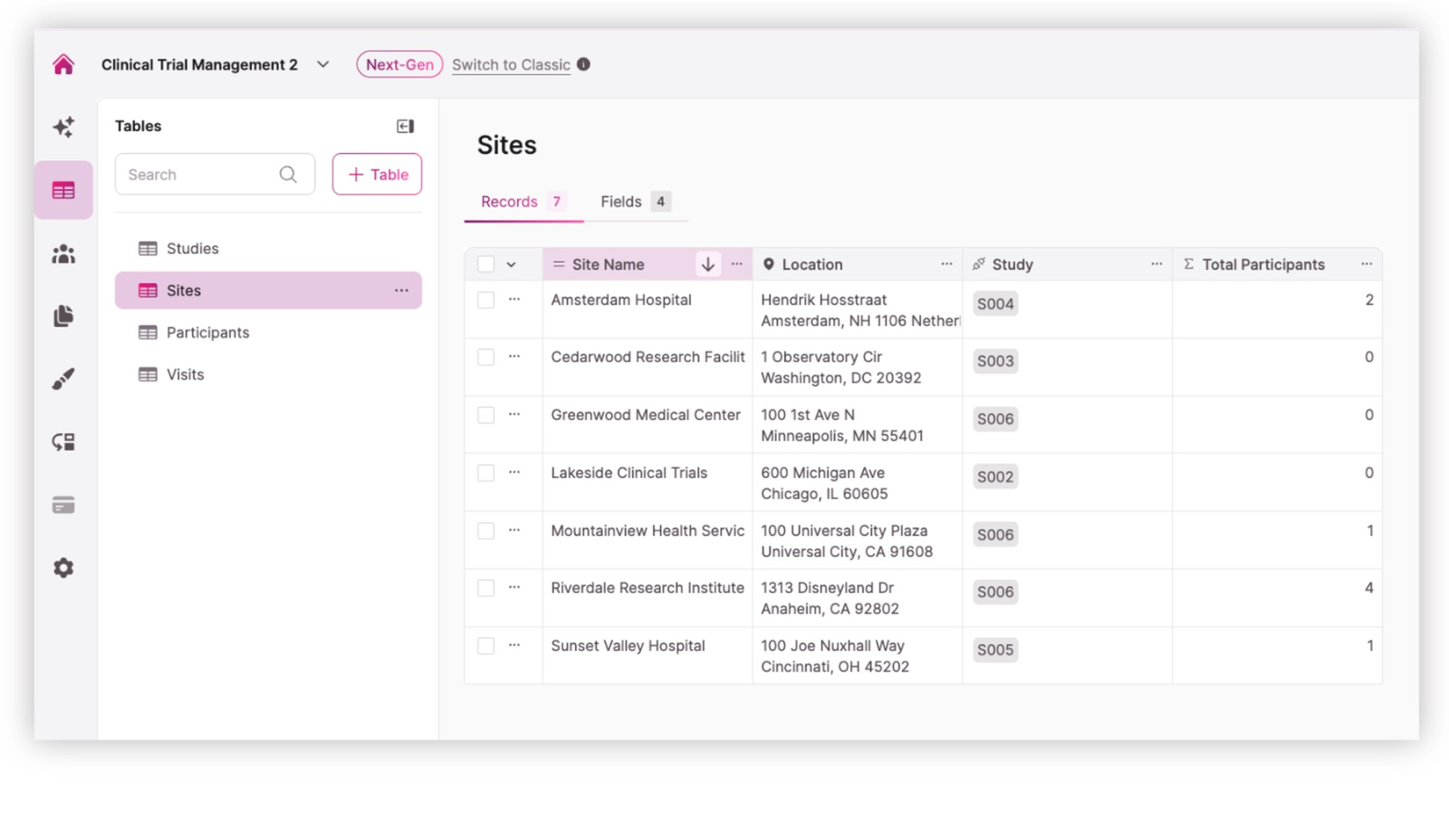 | Fragmented Trial Tracking: Clinical trials are often managed through spreadsheets, emails, and disconnected systems, making it difficult to track participant progress or study performance. | Centralized Study Management: Knack brings participant records, study data, visit tracking, and site coordination into one structured platform designed for clinical research workflows. |