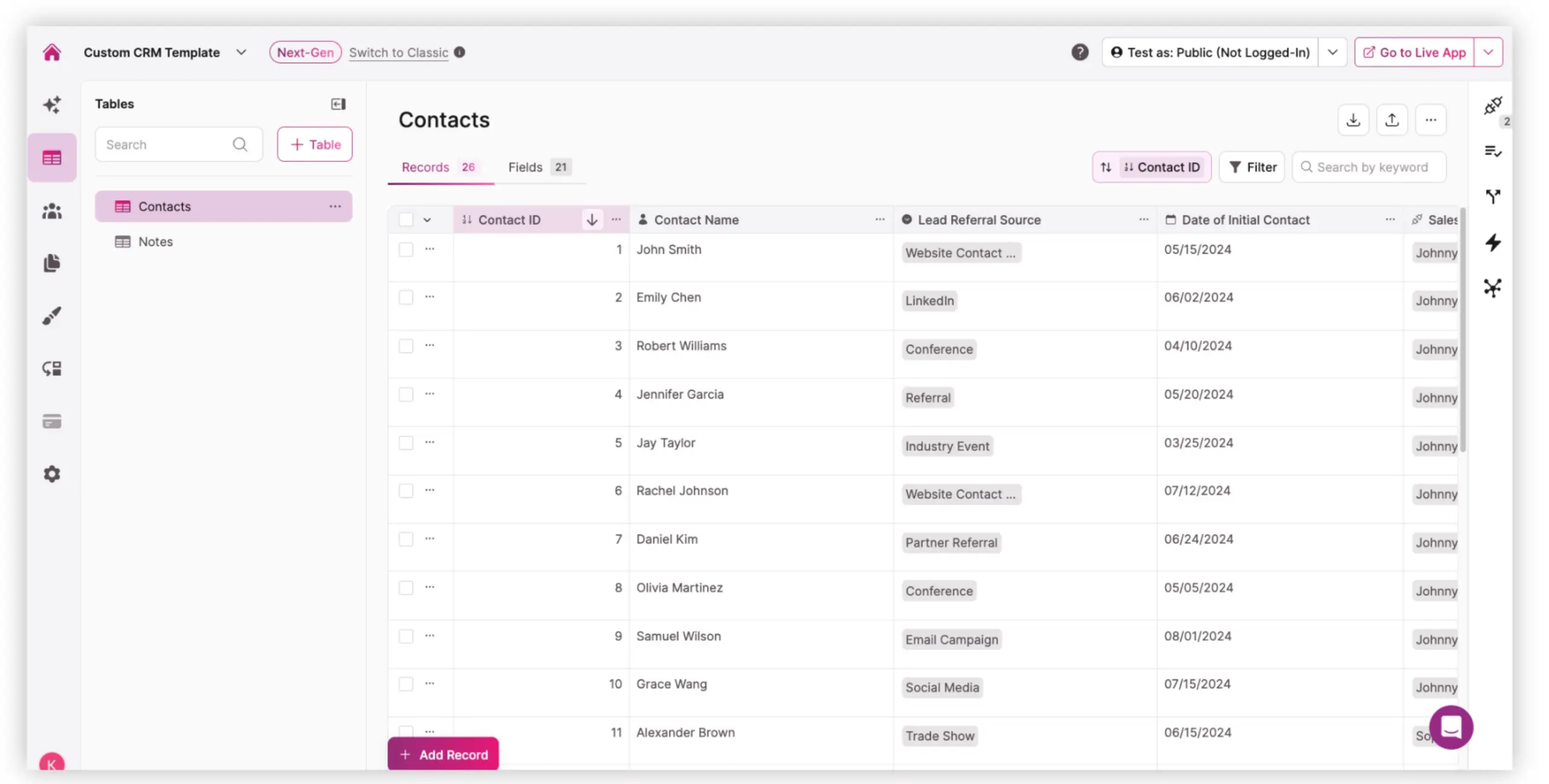 Stop letting pre-built software dictate how you track your customers. Knack lets you build a custom CRM to track and manage your exact customer relationships – no more, no less.