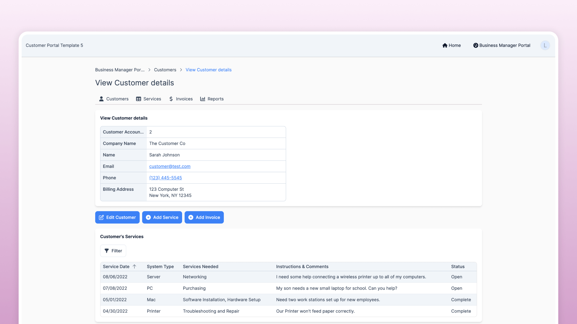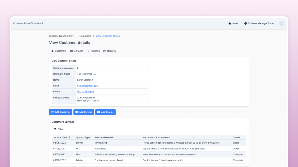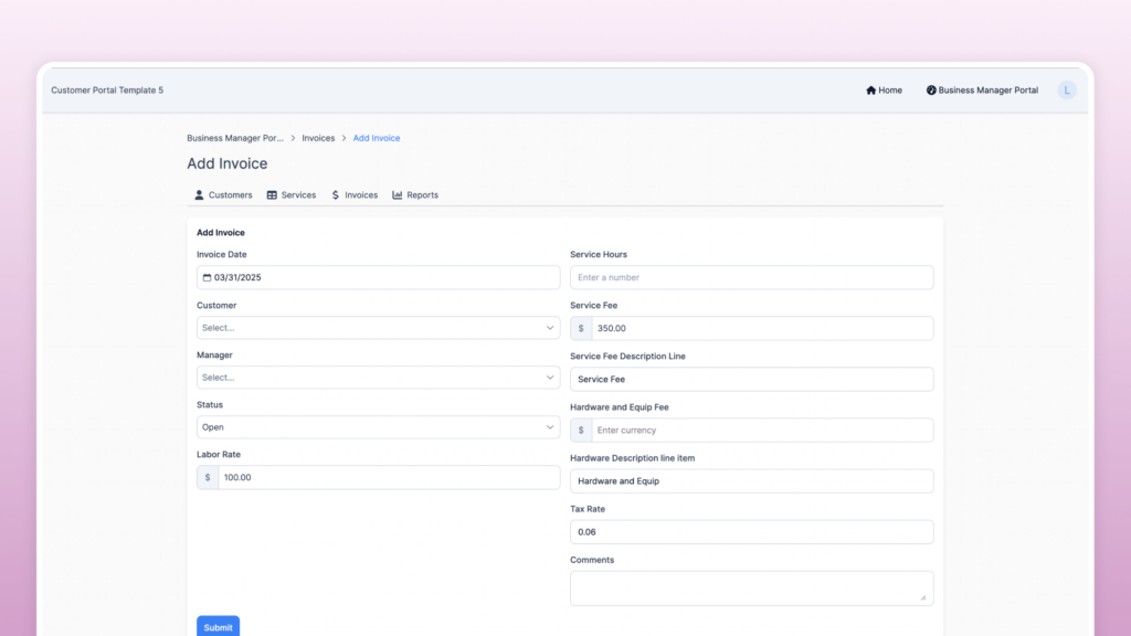 Optionally, the template can be expanded to include payment acceptance, allowing customers to pay invoices directly through the portal.