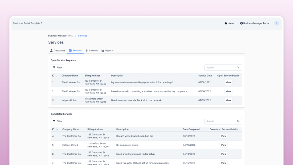 The customer portal can be embedded directly into a business’s website, providing a seamless experience where customers do not need to leave the site to access their portal.