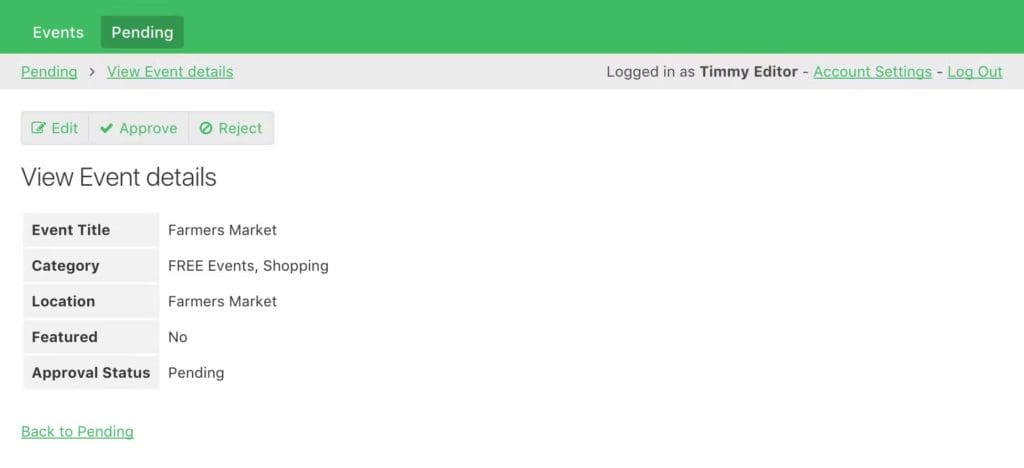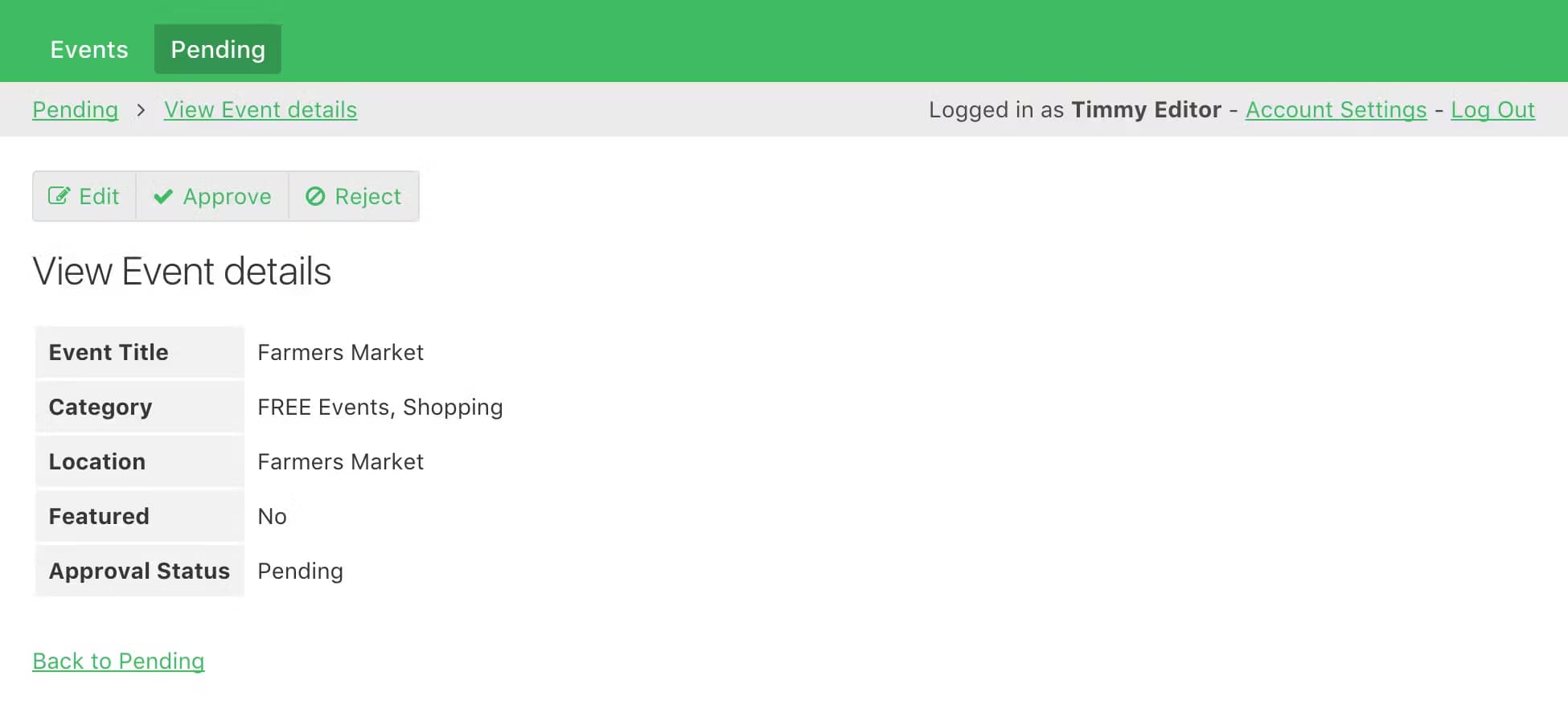 - Integrated workflow – Admins receive alerts for new event submissions and can approve or reject.