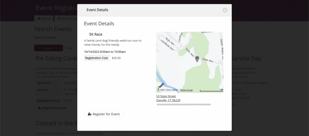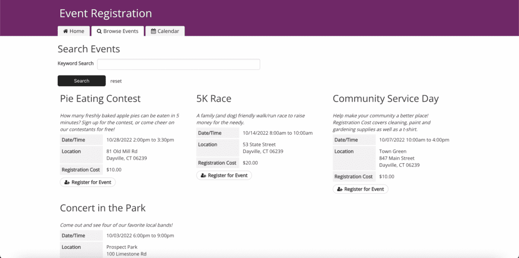 - Paid registrations – Built-in e-commerce features let users pay for their spot directly from the application.