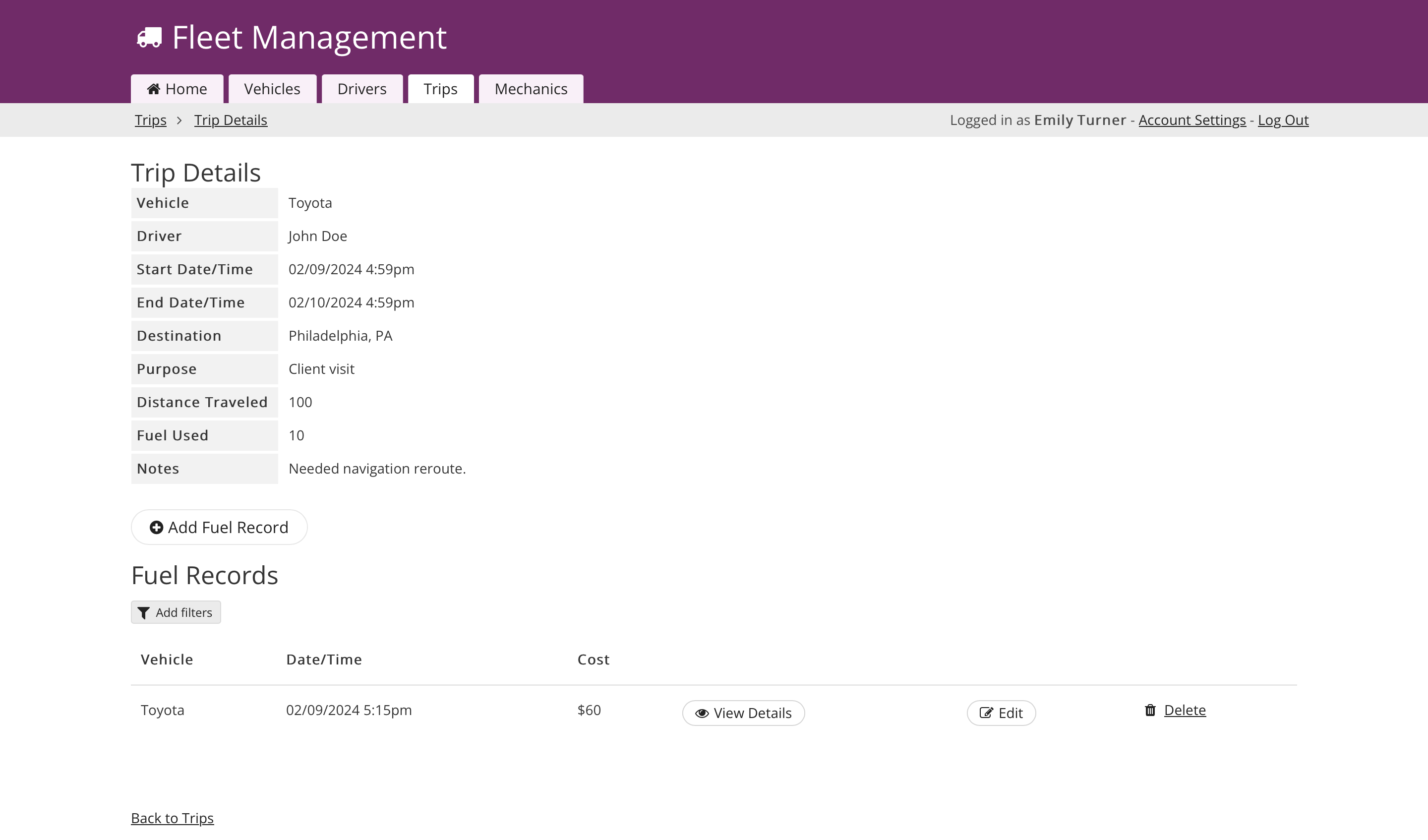 - Trip Management: Efficiently schedule trips, assign vehicles and drivers, and log trip details to track vehicle usage and driver activity.