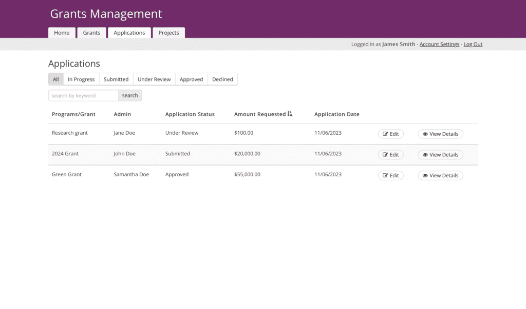 - Workflow Management – Create customized workflows to guide the entire lifecycle of grant applications, from submission and review to tracking status and outcomes.