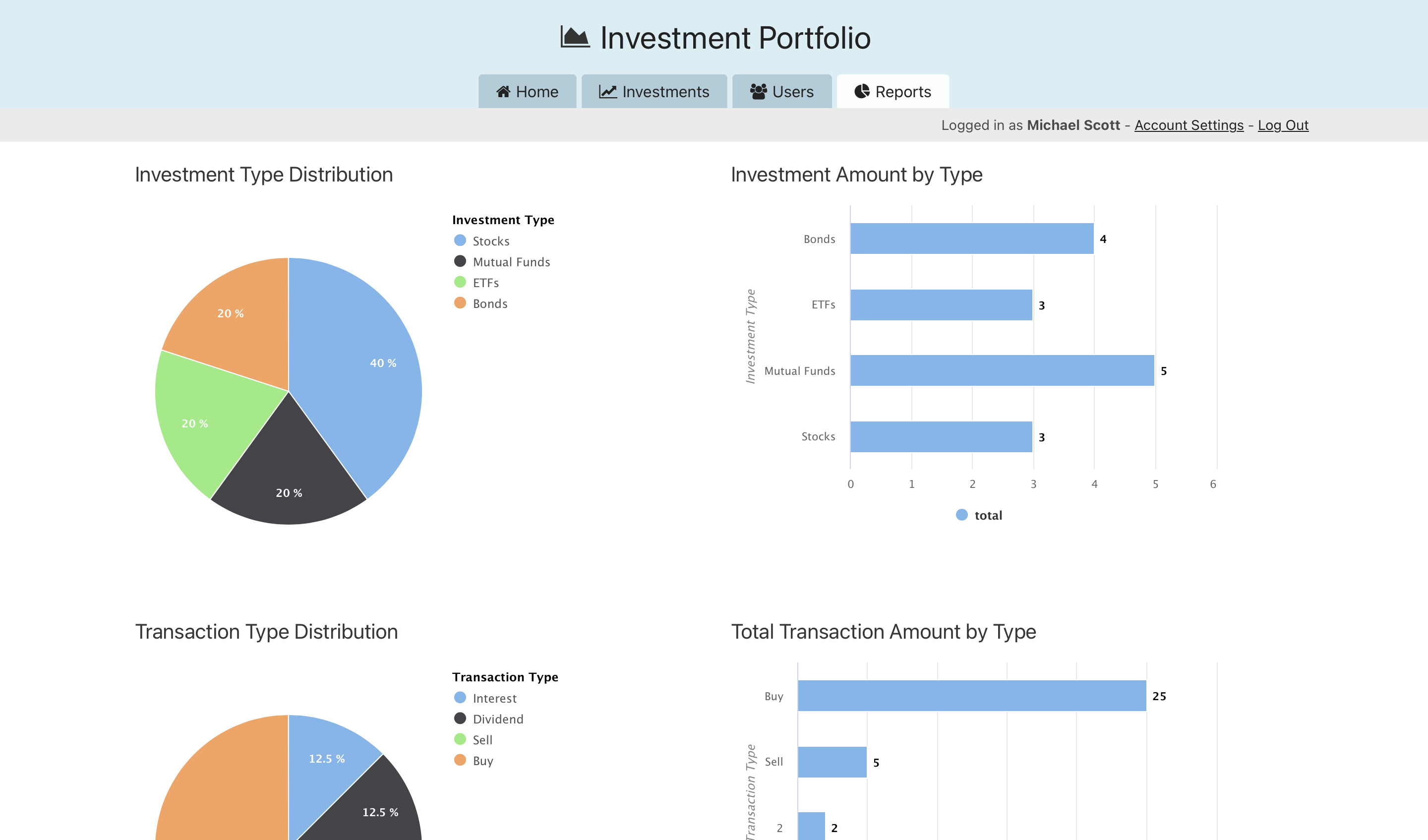- Reports Generation: Supports generating and exporting customizable reports on portfolio performance and transactions in various formats. This feature allows for in-depth review and analysis of both stock portfolio performance and individual transaction details, essential for strategic planning and reporting.