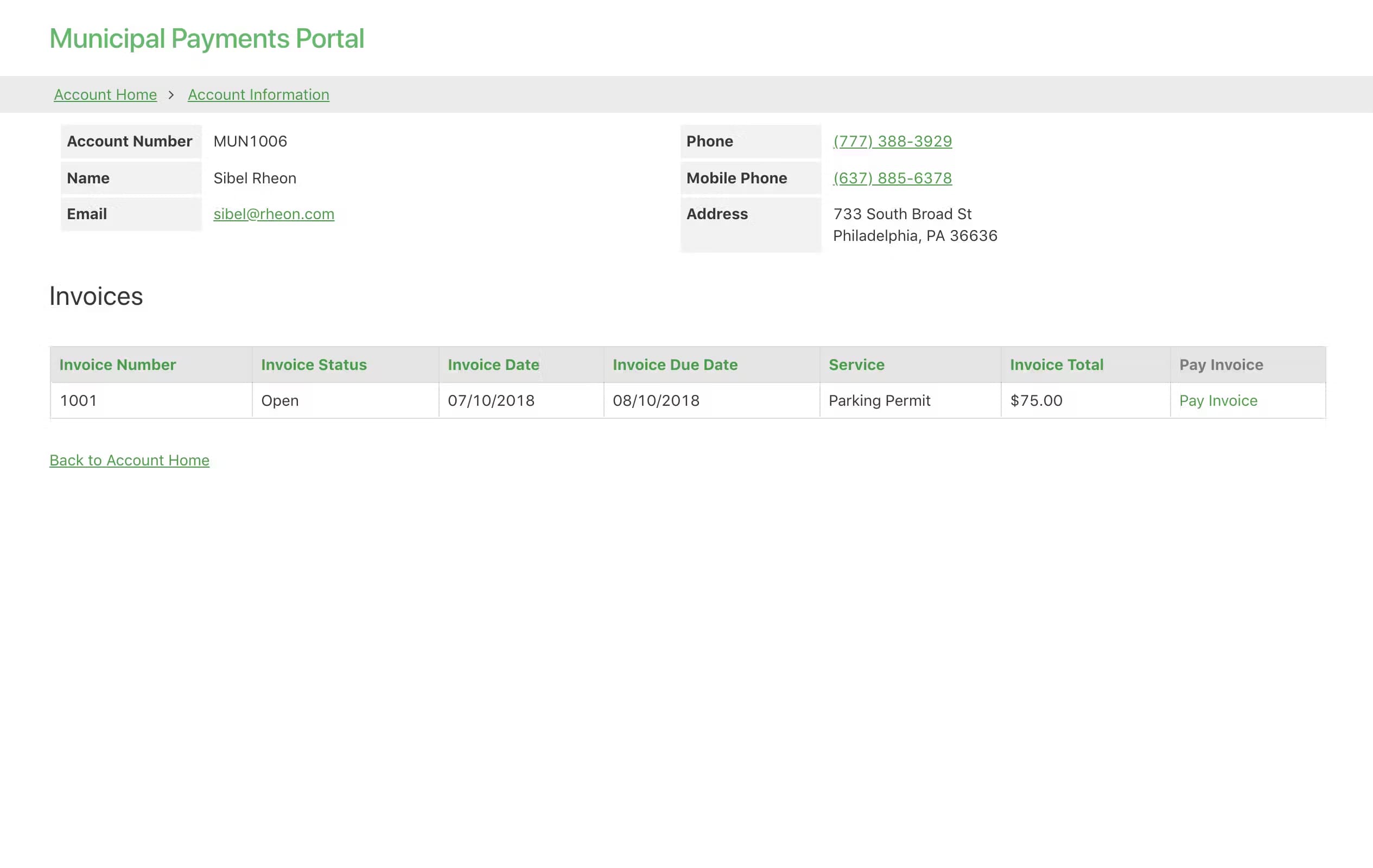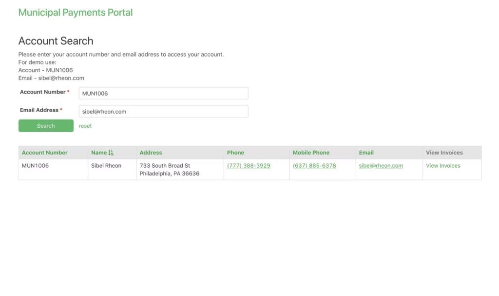 Using their account number, residents can look up their account statements and select an invoice to pay.
