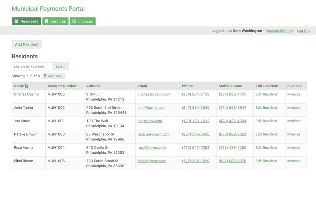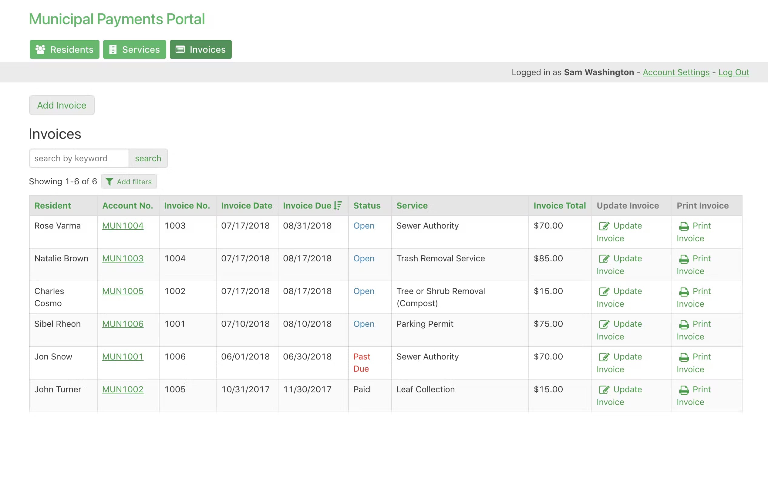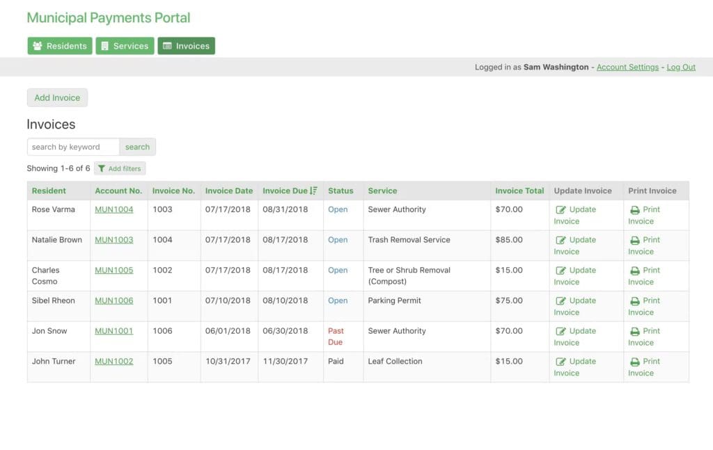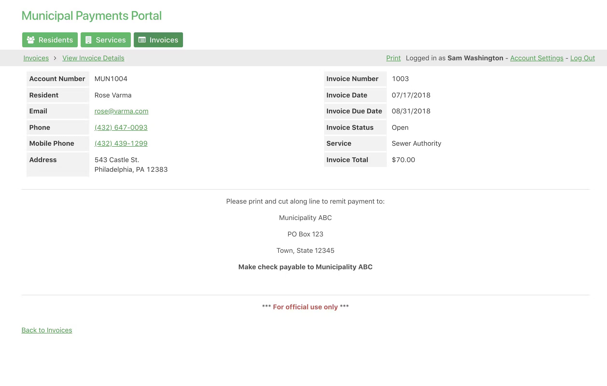 - Easily generate invoices for residents who are required to pay for various municipal services, such as trash collection, water, sewer, or parking permits.