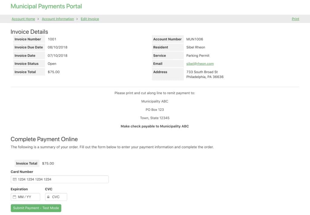 - Leverage payment and e-commerce tools within your app to offer flexibility. Make online payments, or print and mail payments to the municipality.