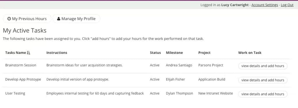 Project managers assign tasks to employee. Hours and expenses are automatically tracked to calculate total costs for the project.