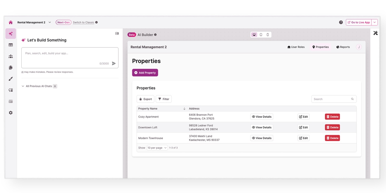 With mobile accessibility, users can manage their tasks on the go, making this app not just a tool, but a versatile companion in rental management. Whether you’re looking to improve operational efficiency, enhance tenant satisfaction, streamline your financial reporting, or access reliable customer support, our Rental Management template app is designed to meet your needs effectively.