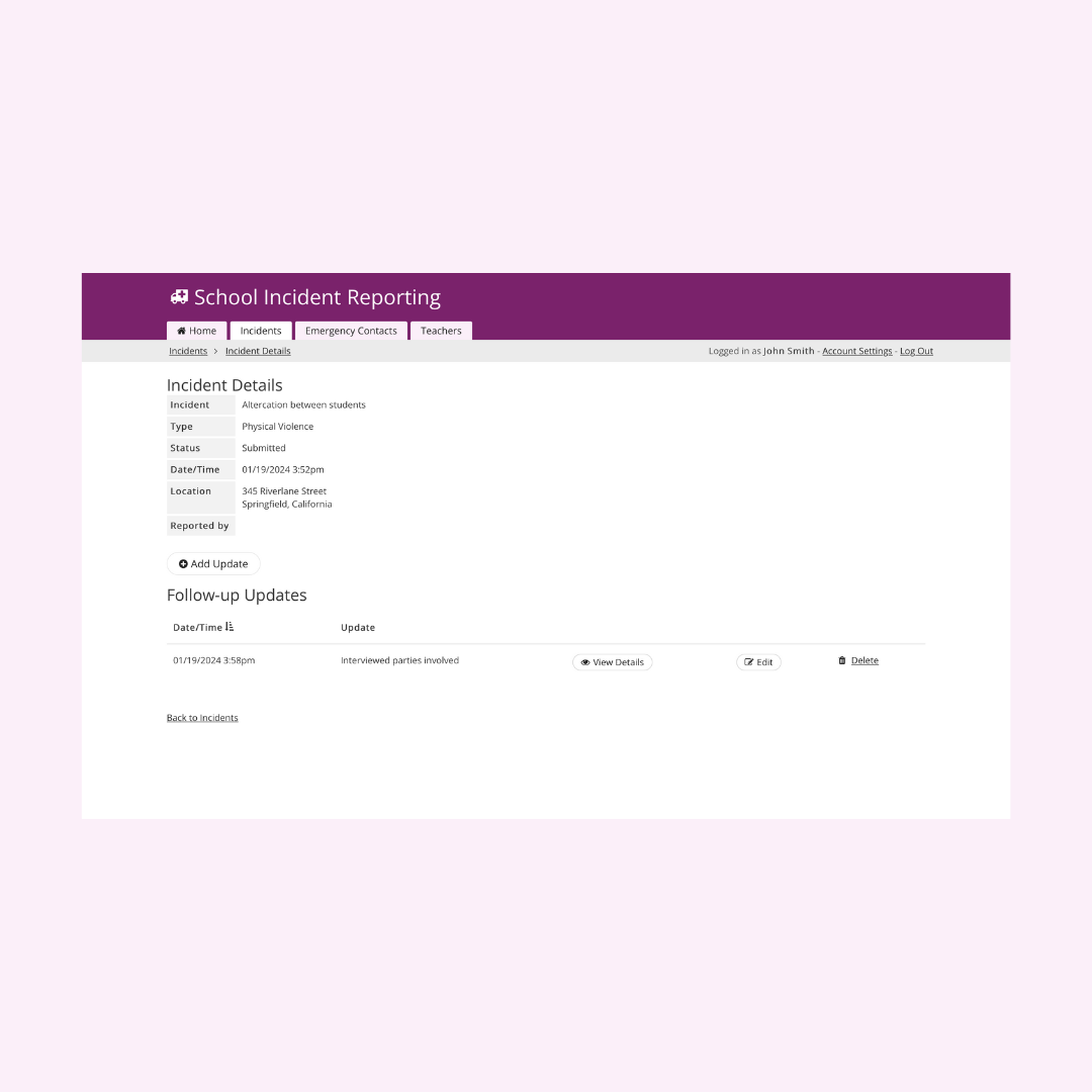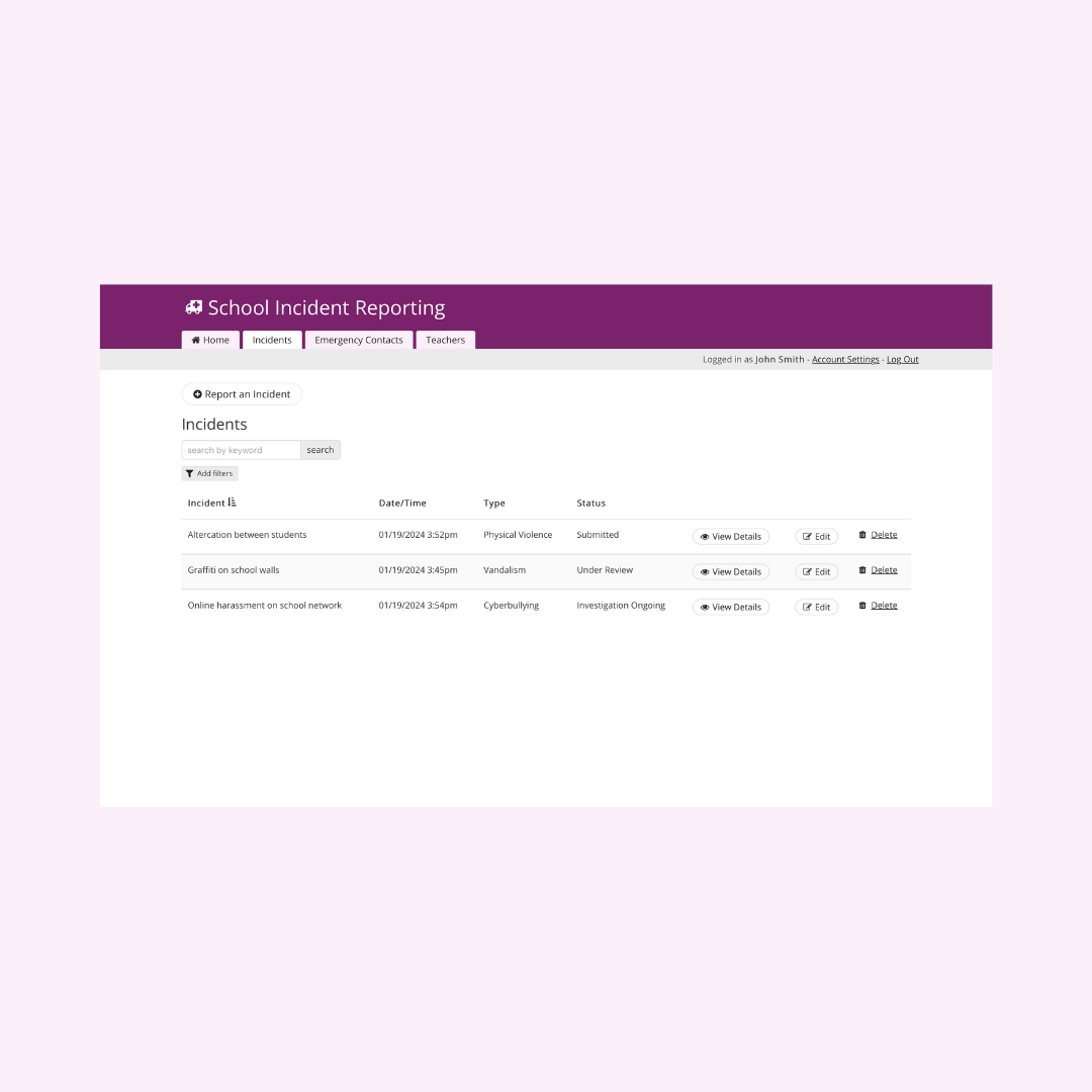 - Real-time Updates: Notify relevant stakeholders (e.g., administrators, teachers) of new incident reports and updates via email or in-app notifications. Ensure immediate awareness and prompt response to incident escalations.