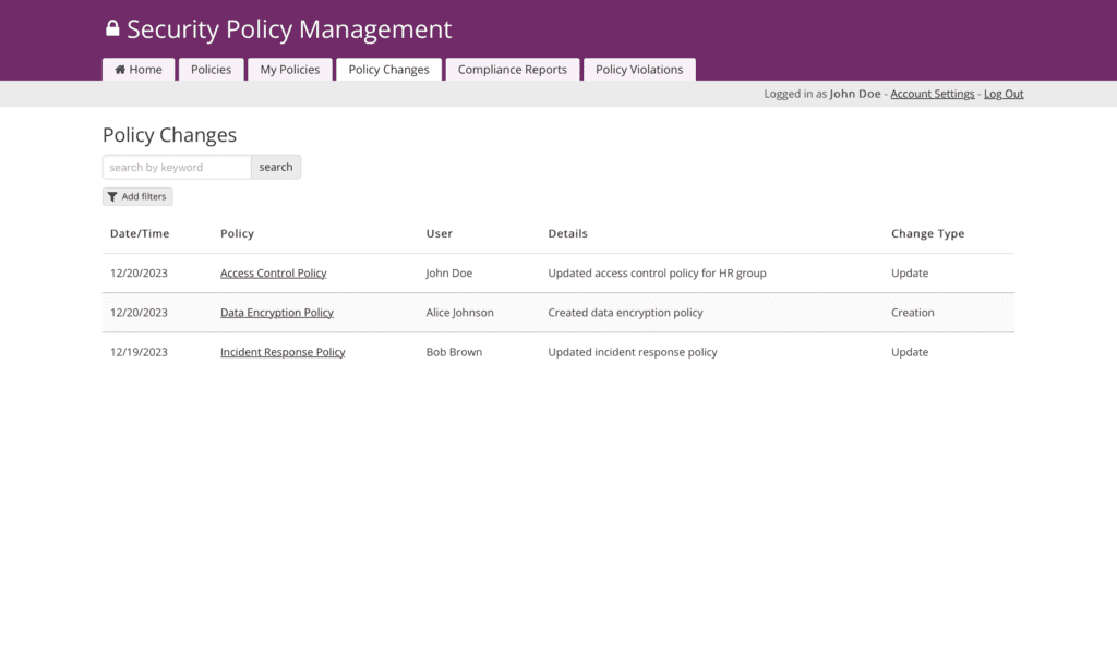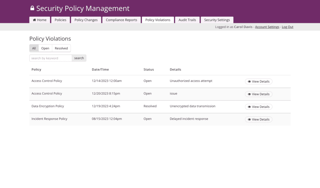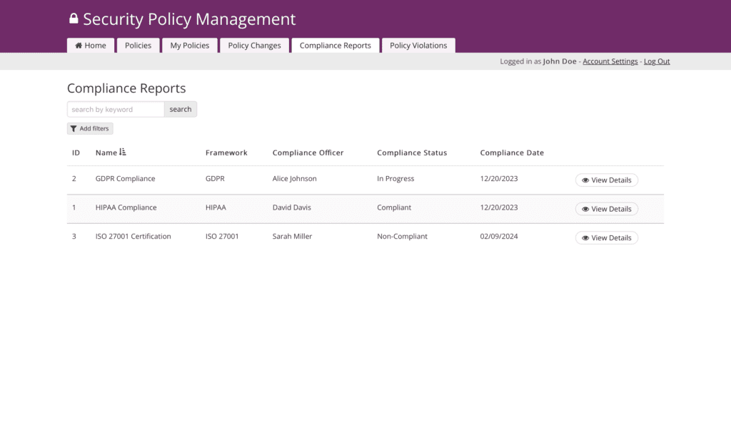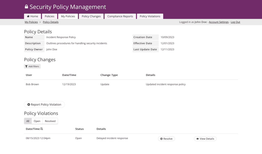 Security Officers harness the app to author, meticulously review, and seamlessly publish cybersecurity policies, fortifying the organization with comprehensive security risk measures.