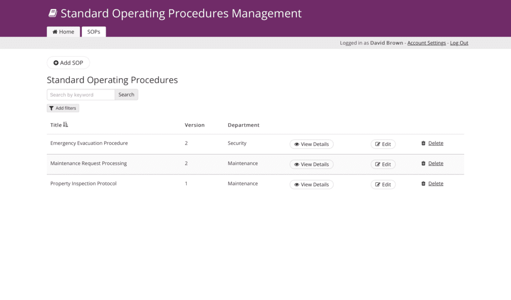 - Departmental Organization: Organize SOPs by department for easy access and navigation, facilitating efficient information retrieval. By categorizing SOPs by department, users can quickly locate relevant docs, reducing search time and improving productivity.