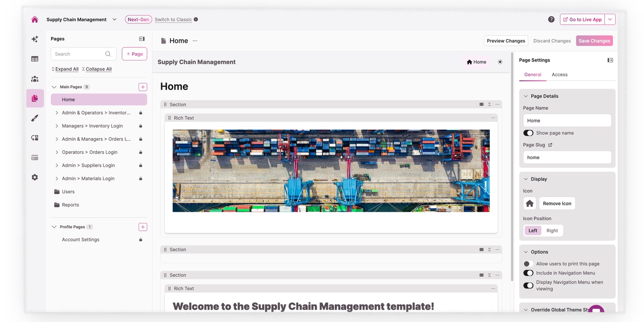 Efficient supply chain management is the backbone of any successful manufacturing business. With the increasing complexity of procurement, inventory, and supplier relations, having a reliable system to manage these processes is essential. Enter the supply chain management app template – a comprehensive solution designed to streamline your operations, enhance efficiency, and optimize resource utilization. This app template offers a robust set of features that address the critical needs of manufacturing businesses, ensuring seamless coordination and effective management of supply chain activities, from sourcing raw materials to final delivery.