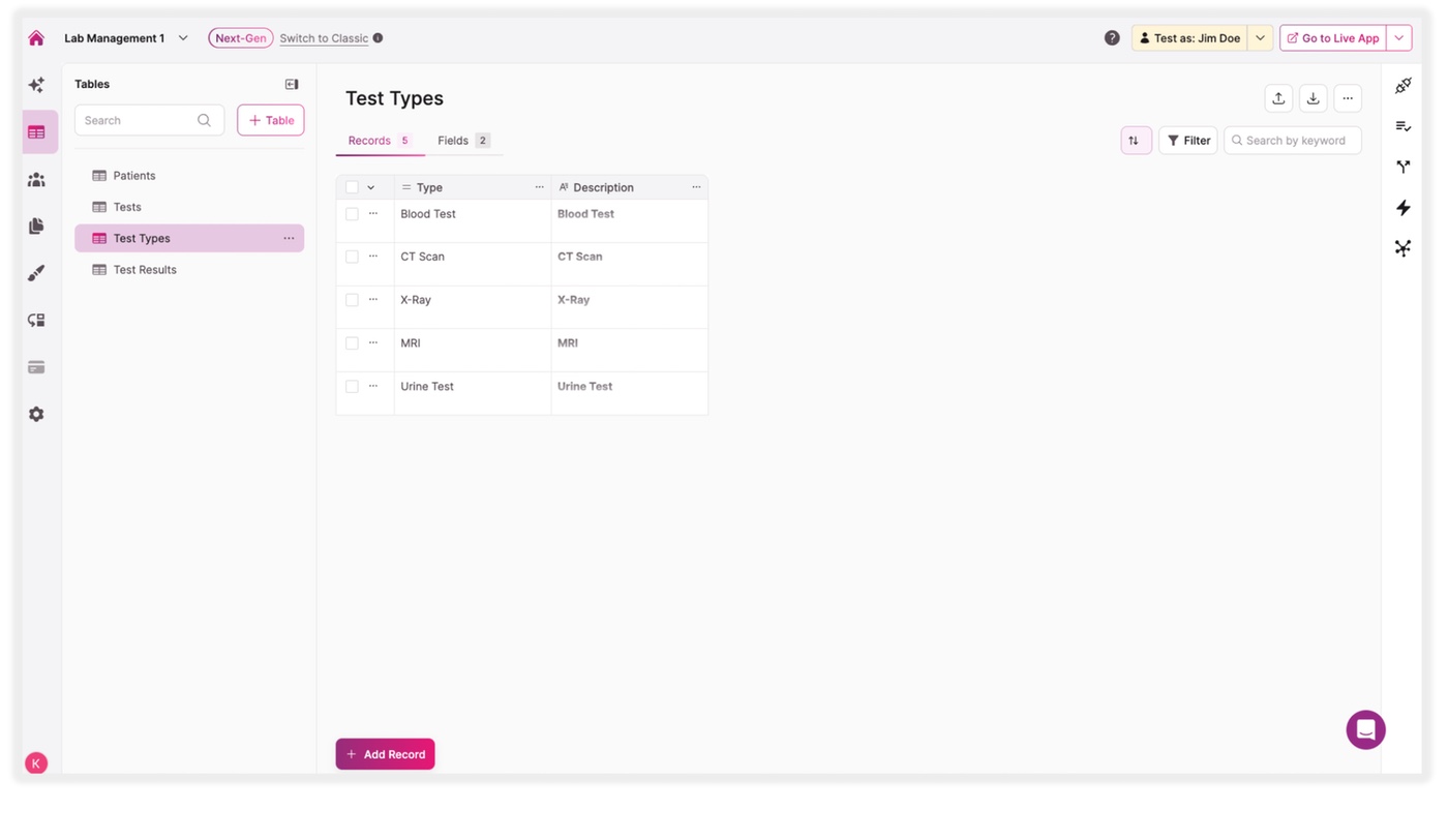Introducing our Test and Lab Management (or LIMS) template app, a comprehensive solution designed to streamline laboratory operations and enhance efficiency in managing test processes. Built with a user-centric approach, this app caters to the diverse needs of testing lab technicians, researchers, and administrators, providing an intuitive platform for conducting tests, managing patient data, and generating insightful reports.