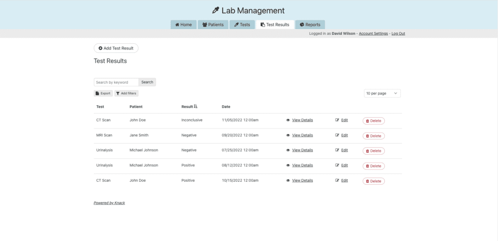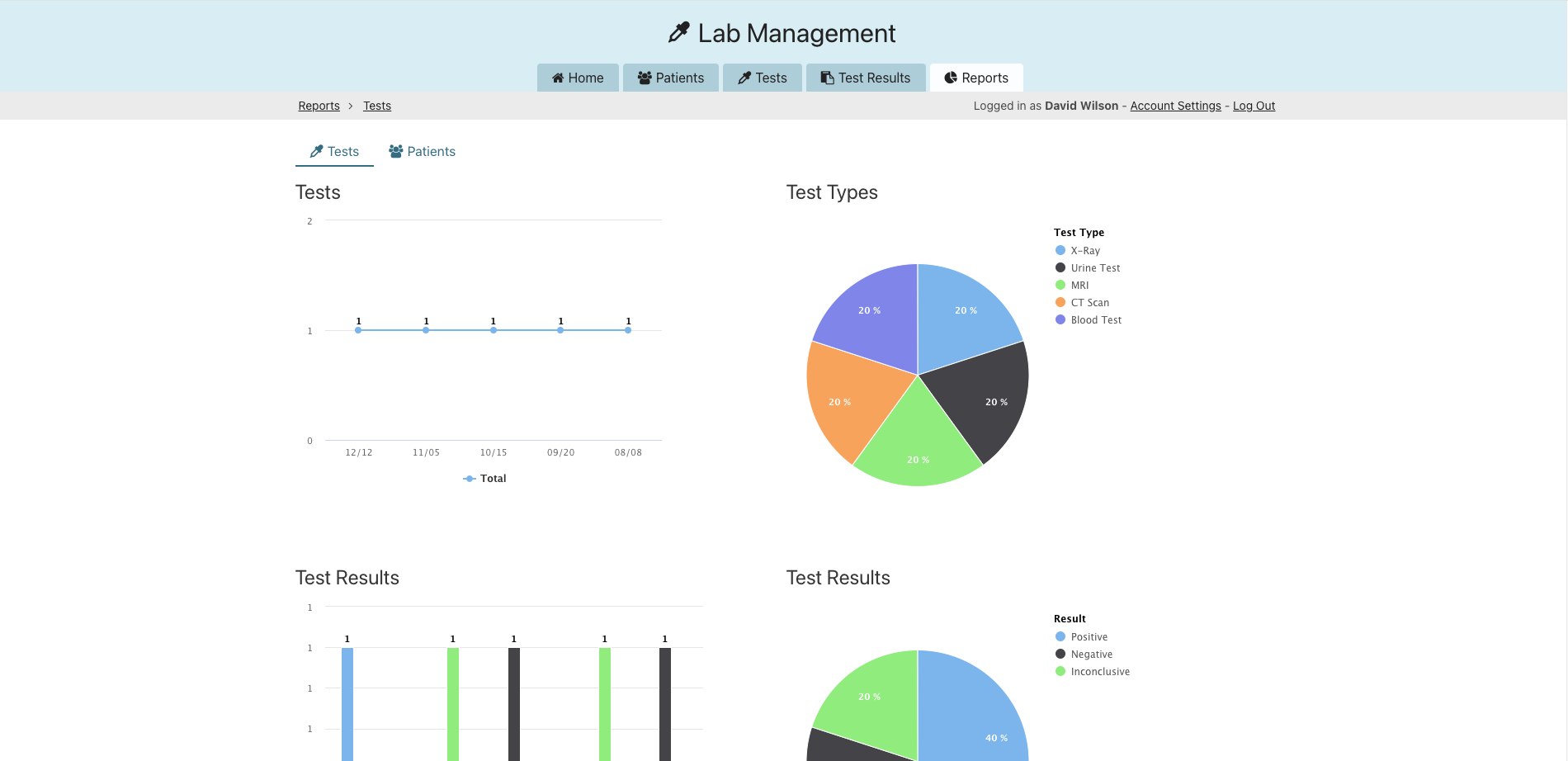 - Reporting and Analytics: Generate customizable reports and charts to analyze test data trends, patient demographics, and lab performance for informed decision-making.